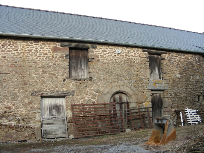 Cet alignement de plusieurs anciens logis est construit en moellon de granite et possède une toiture à longs pans en ardoise. Les baies présentent des encadrements de pierre de taille de granite ; la porte principale est une porte en plein cintre à double rouleau. Le comble à haut surcroît est percé de plusieurs portes hautes qui y donnent accès.