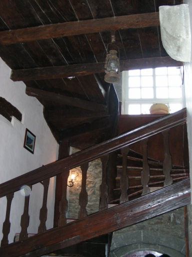 Ce bâtiment possède une maçonnerie de moellon de granite ; le toit à longs pans est couvert d'ardoise. Il s'élève sur trois niveaux : un rez-de-chaussée, un premier étage et un comble. Les baies de la façade sud possèdent des encadrements de pierre de taille de granite, certains sont chanfreinés. Certaines fenêtres de l'étage possèdent des appuis saillants ; les portes permettant l'accès au rez-de-chaussée sont des portes en arcs segmentaires jumelées. Quelques baies de la façade nord possèdent également des appuis saillants ; d'autre part, à l'étage, sur cette façade, subsistent les vestiges de deux portes jumelées. Les souches de cheminée sont au nombre de quatre, l'une d'entre elles est octogonale. A l'intérieur, au rez-de-chaussée, en partie centrale du bâtiment, se trouve la salle, qui possède une cheminée en granite de grande dimension et une poutraison de forte section. L'escalier se trouve face aux portes jumelées, il dessert l'étage, niveau où subsiste une porte en arc surbaissé surmonté d'un décor d'accolade. L'escalier dessert également le comble qui abrite une charpente exceptionnelle.