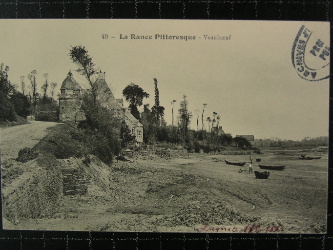 Le manoir de Veaux-Boeufs est implanté en bordure de Rance protégé actuellement des marées par une digue faite d'amas de grosses pierres. Il se distingue aujourd'hui par son pavillon qui est cantonné à l'ouest d'une tour d 'escalier hors oeuvre coiffé d'une toiture polygonale avec campanile. La construction remonte selon certaines sources à 1621. Les armes de la famille de Monterfil, seigneurs du lieu au 16e siècle, sont apposés sur le linteau de porte de la façade est du pavillon. La fenêtre du rez-de-chaussée témoigne de remaniements en 1671, date portée sur les barreaux en fer forgé. La description du domaine retranscrite dans l'ouvrage de l'abbé Auffret, ne correspond plus à la propriété d'aujourd'hui, la tour isolée située à l'ouest et encore visible sur le cadastre de 1848 a été détruite, de même que l'environnement immédiat qui a été très transformé. Il ne reste plus traces des trois allées plantées de charmes, bouleaux et de chênes séculaires, rien également de la fontaine monumentale. Plusieurs pavillons encadraient nous dit-il la cour d'honneur. Ce texte dont la côte n'est pas mentionnée reste une référence à retrouver. Une visite intérieure et des recherches archivistiques complémentaires s'imposent pour cet édifice notable.