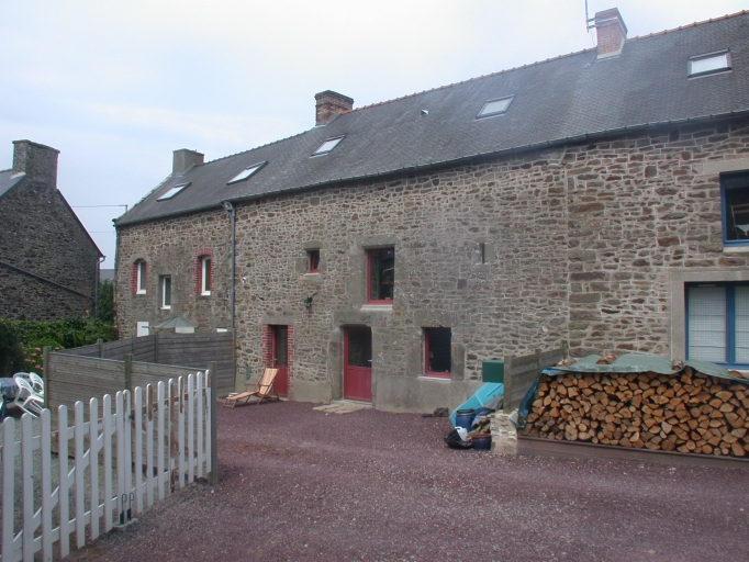 Maison datable de la fin du 17e siècle, comme en témoigne la date portée et l'inscription. Les initiales GE et MO ont été identifiées comme étant celles de Germain Mordrelle dont les registres paroissiaux signalent à la Ville-es-Nonais, les mariages et naissance d'enfants. Le logis a pu également abrité et être partagé avec un prêtre comme le suggère les décors religieux sculptés sur un autre linteau de porte donnant sur la cour. Le calice et la patène ainsi que le livre sont des symboles attribués aux prêtres. Ce logis mérite une étude supplémentaire. Intérieur non visité.