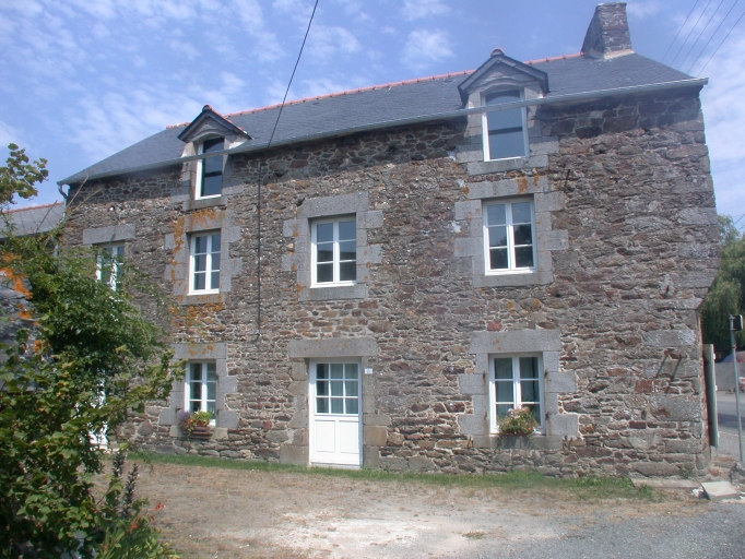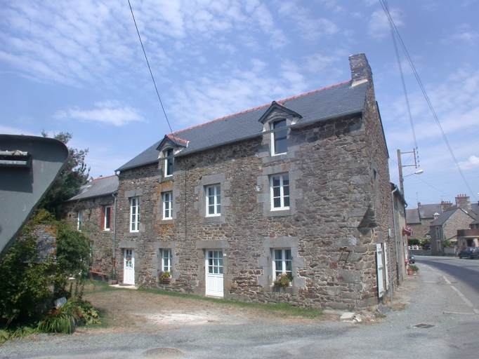 Maisons perpendiculaires à la rue. Logis principal : façade ordonnancée à quatre travées. Deux lucarnes pendantes. Ancien logis accolé : élévation remaniée, façade non ordonnancée.