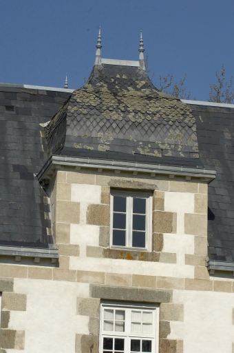 La façade antérieure, dont la travée axiale en ressaut est couronnée d’un toit à l’impériale en ardoise, évoque les hôtels urbains de Saint-Malo du 17e siècle, comme l’hôtel Désiles ou encore ceux de la place des Lices à Rennes.
