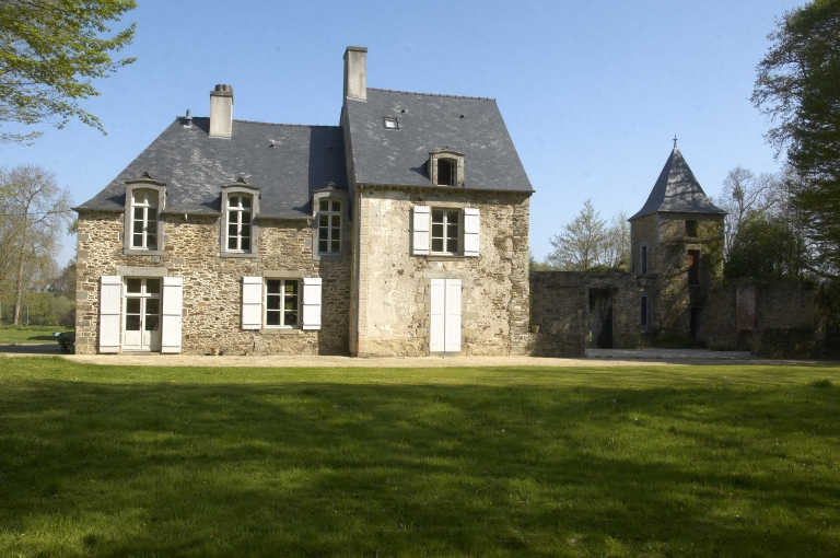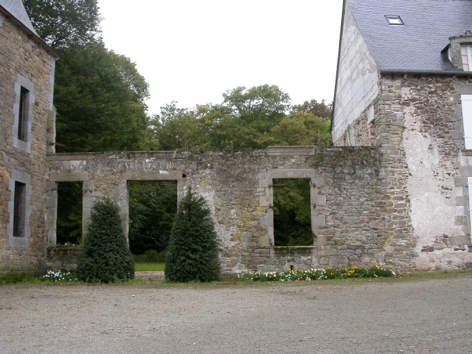 La demeure est partiellement entourée de douves. On y accède par une grande allée. Du logis daté 1711, seule la travée ouest est préservée. Elle est édifiée en moellon de schiste et granite. L'encadrement des baies est en pierre de taille de granite. Elle s'élève sur trois niveaux : rez-de-chaussée, étage carré et étage de comble éclairé par une lucarne. Elle est couverte d'un toit à longs pans en ardoise. Des trois autres travées de l'élévation nord, il ne subsiste que la maçonnerie du rez-de-chaussée. Sur le linteau de la fenêtre à l'est de la porte est gravée la date 1711. Au nord-est des vestiges du logis se trouvent les ruines d'une ancienne ferme composée d'un logis, d'une écurie, d'une étable, d'une grange et d'autres dépendances. Au sud-ouest de la demeure se trouvaient le potager clos par un mur et la maison du jardinier. Dans la cour, une grange et un bâtiment abritant l'étable ou l'écurie sont édifiés en moellon de schiste et granite. L'étage de ce bâtiment a été habité comme l'indiquent les deux souches de cheminée.