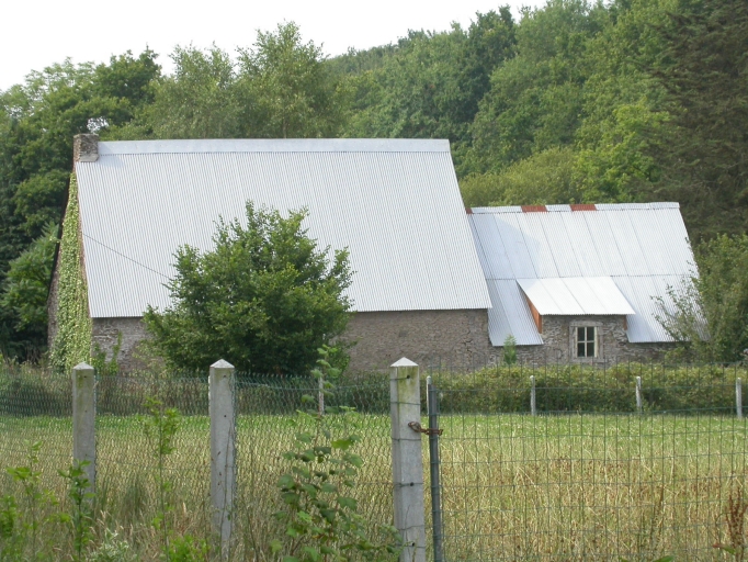 Cet alignement se compose d'une maison à l'ouest et d'une ferme à l'est. Il est construit en moellon de schiste et couvert d'un toit à longs pans, à forte pente, en tôle. L'encadrement des baies de la ferme est en granite avec linteau en bois. La ferme s'élève sur deux niveaux : rez-de-chaussée et comble à haut-surcroît avec une porte-haute tandis que la maison comprend un rez-de-chaussée surmonté d'un comble à surcroît. Le bâtiment de la ferme abrite sous le même toit le logis et la dépendance.