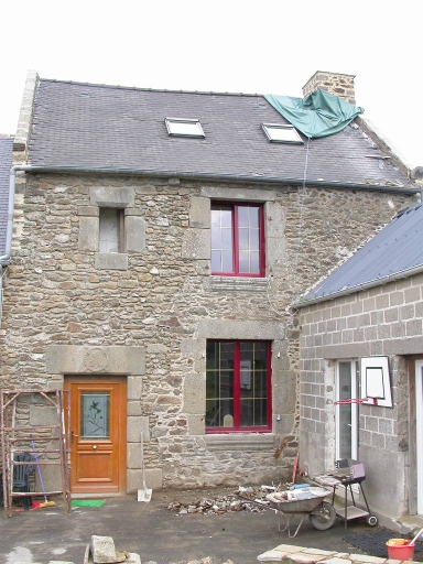 Ce logis est construit en moellon de schiste et granite. L'encadrement des baies est en pierre de taille de granite. L'encadrement de la porte et de la petite fenêtre de l'étage est chanfreiné. Sur le linteau de la porte est gravée une marque de marchand. L'appui des deux autres fenêtres est saillant. Le logis s'élève sur trois niveaux : rez-de-chaussée, étage carré et étage de comble. Le toit à longs pans est couvert en ardoise. La grange et la porcherie se trouvent à l'ouest du logis. Elles sont édifiées en moellon de schiste et granite. Le bâtiment abritant la grange possède une porte avec linteau à coussinet et encadrement chanfreiné.