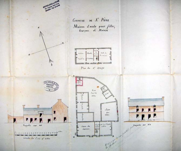 A. D. Ille-et-Vilaine. Série O : Administration et comptabilité communales. Édifices publics. Monuments et établissements publics. École : dossier d'acquisition d'une maison d'école, de travaux d'agrandissement du groupe scolaire (1853-1884) : 2 O 308/22.