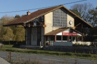 Ce bâtiment est enduit. Les chaînes d'angle, l'encadrement des baies, les bandeaux et la corniche sont en brique. Il est couvert d'un toit à longs pans.