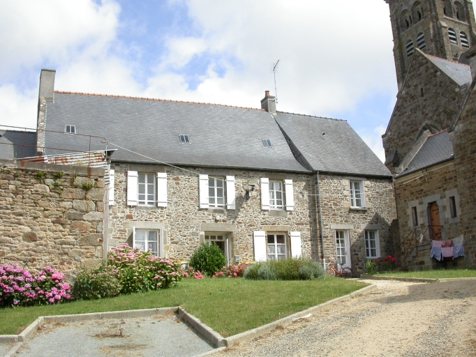 Le corps de logis central est construit en moellon de granite et comprend un étage carré. L'encadrement, en granite, de la porte est chanfreiné. Son linteau est gravé d'une inscription actuellement illisible. La façade sud est ordonnancée. Ce corps de logis, couvert en ardoise, possède une forte pente de toit et un coyau. De part et d'autre ont été édifiées des adjonctions. Dans le jardin clos de murs se trouve une ancienne serre. On peut accéder au presbytère par une porte dont le linteau est surmonté de trois blocs de pierre calcaire ornés de motifs gothique et renaissance. La niche à statue porte l'inscription "AVE MARIA".