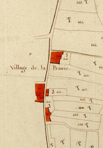 Cet écart existait déjà lors de la réalisation du premier cadastre de la commune en 1809 et s´appelait : « Village de la Prairie ». Les parcelles bâties en 1809 sont identiques à celles où sont représentés des bâtiments sur le deuxième cadastre de la commune, daté de 1848, à l´exception d´une. Actuellement, les bâtiments anciens sont encore presque tous existants. Seules quelques constructions, dont une très récente, sont venues développer l'écart depuis 1848.