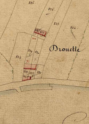 Cet écart existait déjà lors de la réalisation du premier cadastre de la commune en 1809 et s´appelait : « Village de Drouette ». Les parcelles bâties en 1809 sont identiques à celles où sont représentés des bâtiments sur le deuxième cadastre de la commune, daté de 1848. Seul un alignement de deux maisons a été construit entre 1809 et 1848. Cet écart se composait d'un alignement de cinq logis et de deux alignements de deux logis chacun, parfois accompagnés de dépendances. Dans son ouvrage sur la commune de Saint-Père-Marc-en-Poulet, Théodore Chalmel mentionne qu´un fournil existait à Drouette en 1700. Actuellement, les bâtiments anciens sont encore presque tous existants. Des constructions neuves, datant de la 2e moitié du 20e siècle, sont venues développer considérablement l'écart.