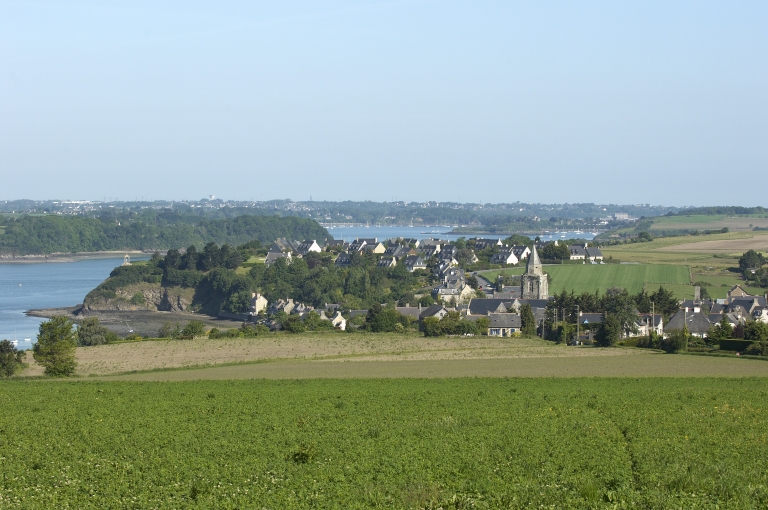 Le village est situé sur la rive droite de la Rance. Niché au fond d'une anse, il se présente en amphithéâtre. Il est encadré au nord par la pointe de Grinfolet et au sud par la pointe du Mont Gareau. L'église et son ancien cimetière clos de murs forment un ilôt décalé de l'axe central de la grande Rue qui se poursuit par la rue du Pavé. Le réseau du bourg complexe présente des axes principaux mais également de nombreuses voies secondaires, appelées ruettes pour certaines, dont les parcours sinueux ou abruptes attestent de leurs anciennetés. Le tissu du bourg est particulièrement dense. L'imbrication des logis, les implantations mitoyennes, les clos de murs sont une réponse aux vicissitudes du climat et à la nécessité de se protéger des vents dominants. Les premières implantations sont construites perpendiculairement à la rive autour de l'église. Ces maisons orientées ainsi offraient un côté réduit aux fortes tempêtes du large. Le front de mer est discontinu et les maisons implantées à la Ville-Neuve forment un hameau isolé du centre. Le bourg semble s'être presque définitivement établi dans sa configuration actuelle à la fin du 17e siècle. Il a très peu évolué aux siècles suivants comme en témoigne le cadastre de 1809. La création de quartiers résidentiels est récente. Si la majorité du bâti a été modifié toutefois à la fin du 19e siècle ou au début du 20e siècle, il n'y a pas eu cependant à cette période de modifications notables en dehors de la construction de la jetée et des quais.