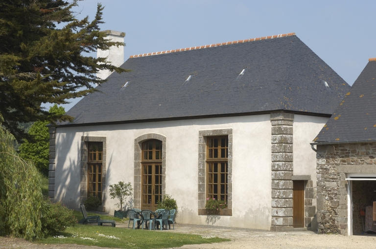 Plan en L. Logis principal accolé d'un logis secondaire et de parties agricoles. Aile de dépendance en retour d'équerre sur la cour avec ancien portail d'entrée. Le logis principal a été transformé à plusieurs reprises et sa façade a été recouverte d'un enduit de ciment. Les percements ont été également modifiés ainsi que l'ensemble de l'élévation qui est recouverte d'une toiture à longs pans et croupe. L'orangerie, plus à l'ouest est le seul bâtiment séparé de l'ensemble. Elle a été également recouverte d'un enduit de ciment. Les encadrements des baies et les chaînages des angles en pierre de taille de granite ont été toutefois sauvegardés, comme l'ancien portail d'entrée à l'est de la cour. Orientation principale sud. Chapelle détruite mentionnée dans les sources.