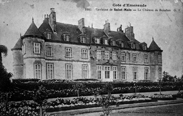 Bonaban fut le siège d'une seigneurie importante fondée par les Bonabes de Rougé au 13e siècle, qui passa par héritage à la maison de Maure vers 1270. Simple baronnie s'étendant sur quinze paroisses, la seigneurie érigée en comté en 1553 avait droit de haute, moyenne et basse justice ; elle rendait aveu au marquisat de Châteauneuf. Elle appartint aux Guiny de la Garoulaye (1560), Pépin du Bignon (1664), Courtavel, de Pèze et De Vassé. A cette époque, le premier château possédait un corps de bâtiment de 72 pieds de longueur avec une autre construction à l'ouest et un pavillon à l'est, flanqué de deux tourelles aux angles nord-est et sud-est. Au nord s'étendait une cour haute et une cour basse, réunies par un perron de 13 marches ; la cour basse avait un portail et deux pavillons avec un pont-levis. Le manoir était entouré de douves. A côté se trouvait un colombier (1665), et à ses pieds s'étendaient de beaux étangs. Le comté devenu châtellenie en 1667, passa à Guillaume Le Fer de la Saudre (1754) qui fit construire le château actuel en 1776 sur les ruines du précédent. Sous la Révolution, le château fut réquisitionné et les troupes y commirent des dégradations : les superbes tapisseries des Gobelins et d'Aubusson d'après des cartons de Lebrun servirent de couvertures, le mobilier fut dispersé, les objets métalliques réquisitionnés et la grande salle transformée en séchoir à tabac. Propriété de la famille Level, le château, vendu en 1842 au comte de Kergariou, sera occupé par les anciens combattants français pendant la Seconde Guerre mondiale. En 1954, le château est acheté par la compagnie Saint-Gobain pour qu'y soit installé un centre de colonie de vacances. Racheté en 1995, le château connaît aujourd'hui une nouvelle vie comme hôtel.