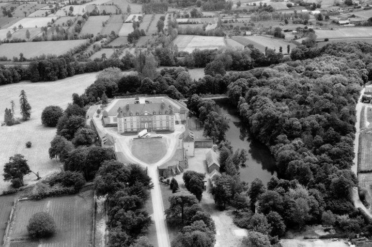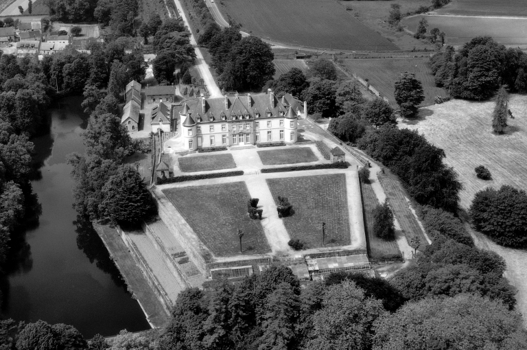 Une grille monumentale sommée d'armoiries fermait la propriété. Une avenue longue de 650 mètres donne accès au château cerné de douves importantes. Orné de beaux jardins et de parterres, le château est flanqué d'une tour à chaque angle et d'un avant-corps en pierre de taille de granite à fronton au milieu de la façade. Celle-ci possède 11 travées. Les murs étaient revêtus d'un crépi blanc sur lequel se détachent les entourages de baies et les bandeaux horizontaux séparant les niveaux en pierre de taille de granite. On accède au château du côté nord par un perron à double rampe, et de l'autre côté par un perron carrée de quatre marches en pierre de taille. Il possède encore le colombier seigneurial. Un oratoire est placé dans la tourelle nord-ouest en 1891. Un escalier monumental est édifié en marbre de Carrare.