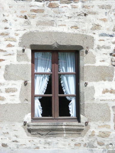 Maison construite en moellon de granite. Les encadrements des ouvertures sont en gros appareil régulier de granite aux bords chanfreinés. Le linteau de la porte est décoré d'une accolade saillante décorée de feuilles. La fenêtre a un linteau sculpté d'une petite accolade et un appui saillant.