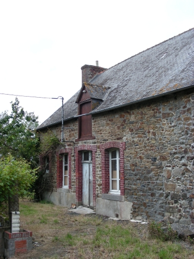 Maison construite en moellon de granite. Les encadrements des ouvertures du rez-de-chaussée sont en brique avec un linteau cintré. La gerbière du grenier est en bois.