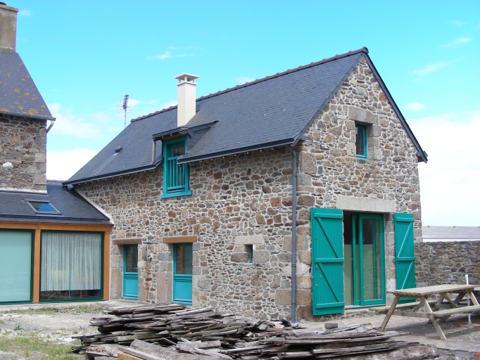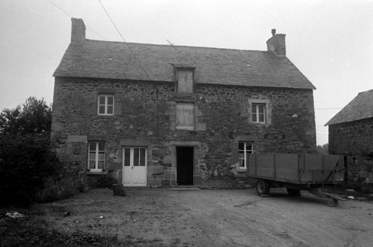 Les bâtiments de la ferme sont disposés en U autour d'une cour. Le logis est au nord, la grange couverte en tuile, l'étable-écurie et le cellier sont alignés à l'ouest, la porcherie est à l'est. Les bâtiments sont construits en moellon de granite et de schiste. Les encadrements des ouvertures du logis sont en gros appareil régulier de granite avec des bords chanfreinés. Le cellier a des pignons débordants.