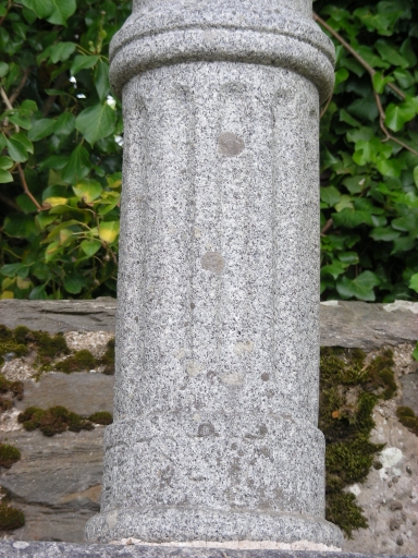 Cette croix est réalisée en granite ; son socle porte une inscription difficilement lisible. Il s'agit probablement de 15 AOUT 1888. La partie basse de la hampe porte également une inscription qui fait le tour de cette partie circulaire. Les mots "REPOSE" et "CORPS" y sont encore lisibles.