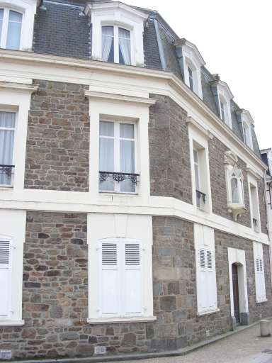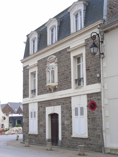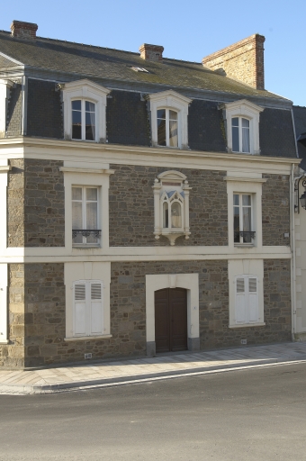 Cette maison est située à l'angle de la rue de Rennes et de la place de l'Église, son plan épouse donc la forme particulière de cette parcelle. La maçonnerie de ce bâtiment est composée de moellon de granite ; le comble à la Mansart est couvert d'ardoise. Ce comble est éclairé par de nombreuses lucarnes. Sa position à l'angle de deux rues implique qu'il existe deux façades. Chacune est rythmée par trois travées, composées de baies quadrangulaires au premier étage et à linteaux en arcs segmentaires au rez-de-chaussée. La façade qui donne sur la place de l'Eglise possède une niche à statue au premier étage. Au niveau du premier étage également, en façade Est, une pierre portant un décor d'agneau et la date de 1595 est insérée dans la maçonnerie.