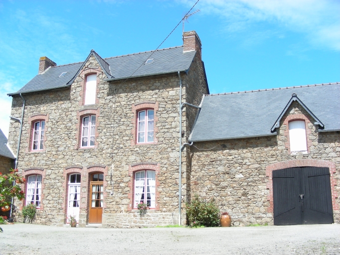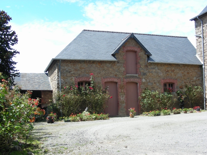 Les différents bâtiments qui composent cette ferme présentent des maçonneries composées de moellon de granite et de schiste et possèdent des toitures en ardoise. Le logis se trouve au nord-est de la cour, dans son prolongement, au sud, se trouve une ancienne grange. Au nord de la cour, il existe d'anciennes étables et écuries et des porcheries au nord-ouest. Le logis s'élève sur trois niveaux, un rez-de-chaussée, un premier étage et un comble accessible par une porte haute centrale. La façade est rythmée par des travées composées de baies à encadrements de brique. La travée centrale forme un pignon en partie haute. En partie centrale de la façade postérieure, il existe une tour. Les encadrements de baies des dépendances sont également réalisés en brique.