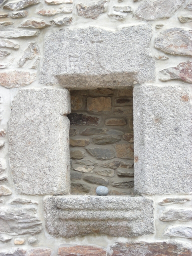 La maçonnerie de ce bâtiment est réalisée en moellon de granite et de schiste ; le toit à forte pente est couvert de tôle ondulée. Les encadrements de baies sont réalisés en pierre de taille de granite ; ils sont chanfreinés. Le linteau de la fenêtre est décoré d'une accolade ; la porte en plein cintre est également surmontée d'une croix pattée.