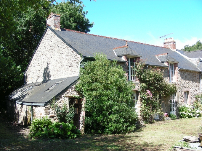Ce bâtiment possède un plan en "L" ; la maçonnerie des deux corps de bâtiments est composée de moellon de granite et de schiste. Les toitures à longs pans sont couvertes d'ardoise. Les baies de la partie centrale de la façade possèdent des encadrements en pierre de taille de granite et des linteaux en bois, alors que les autres baies présentent des encadrements de brique. Des portes hautes pendantes permettent l'accès au comble. Elles sont couvertes de toits à croupes, surmontés d'épis de faîtage.