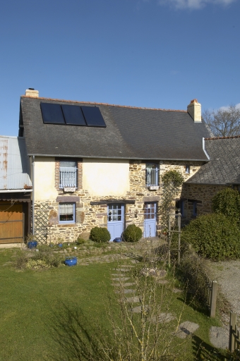 Extraite localement, il s'agit en majorité de pierre de schiste utilisée en moellon. La terre est utilisée selon la technique de la bauge. Selon une pratique constante, les bâtiments, qu´il s´agisse du logis ou des communs, reposent toujours sur un muret de pierre formant généralement une assise horizontale régulière au-dessus de laquelle est édifié le mur de terre. La construction en bauge se rencontre majoritairement au centre du bassin de Rennes. Quelques maisons de la commune n'ont que l'arrière et les pignons du bâtiment réalisés en bauge. D'autres sont construites aux deux tiers en pierre et le tiers supérieur en bauge. Sur quelques maisons plus anciennes, il est possible de remarquer une surélévation en terre, celle-ci correspond à un changement de toiture lorsque les anciens toits très pentus à coyaux supportant des couvertures en chaume ont été changés en toits d'ardoise, il était impératif de modifier la pente de toit et donc de surélever les façades et les pignons. Quelquefois les constructions en terre se limitent aux dépendances : fournil, soue à cochons, grange, cellier. Cette technique de construction est présente sur la commune du 17e siècle au début du 20e siècle.