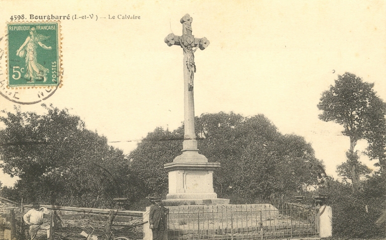 La croix qui se trouve face à la Poste est le don d'un paroissien, M. Guillaume Herfray, propriétaire à Bourgbarré. Il offrit ce calvaire en 1942, en remerciement de la protection du bourg durant la dernière guerre.