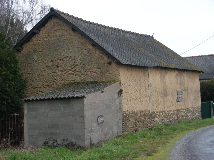 La façade de cette ferme est recouverte d'un enduit, les pignons et les murs arrières montrent qu'il s'agit d'une construction en terre. Les encadrements des ouvertures sont en brique avec un linteau en bois. Il y a un cellier en appentis postérieur, une étable et un puits.