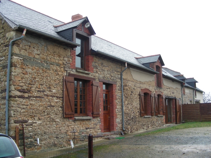 Cette ferme se compose de deux corps de bâtiments disposés en alignement. La maçonnerie est en moellon de schiste et présente un peu de terre en haut des murs. Les ouvertures sont en brique et ont un linteau en brique cintré ou un linteau en bois.