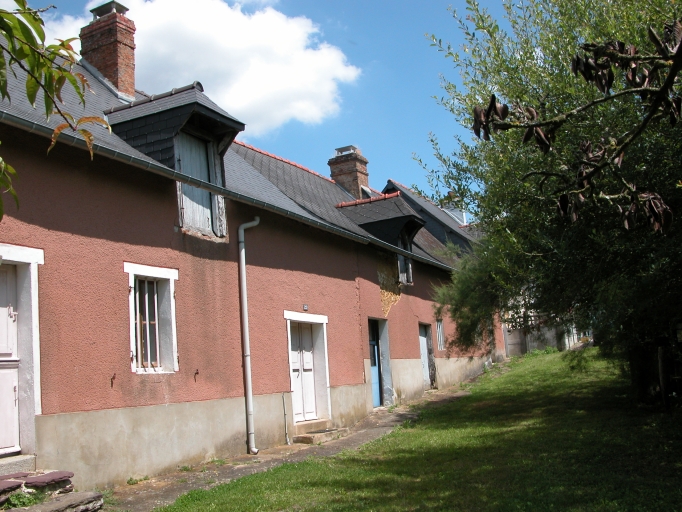 Implantation perpendiculaire à l'axe de circulation. Ensemble de logis mitoyens réunis aujourd'hui sous un même fonds. Une des maisons de l'alignement n'a pas été repérée en raison des remaniements trop importants. Gros oeuvre en terre sur un solin de schiste. Dalles de schiste encore en place sur les seuils des maisons. Parti bas, rez-de-chaussée et grenier éclairé par une lucarne pendante. Chaque logis était composé d'une pièce à feu et d'une pièce de resserre froide qui a été aménagée en cuisine pour un des logis. Orientation sud.