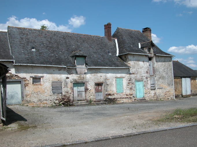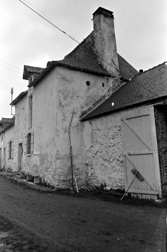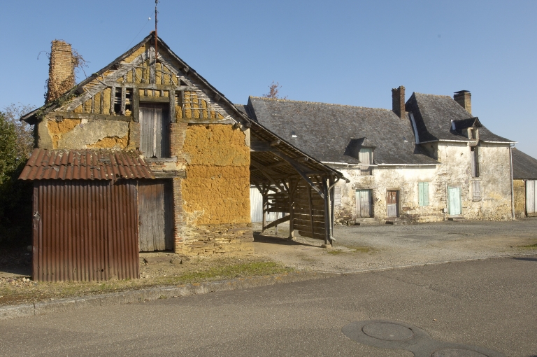 Cour ouverte. Plan en L. Corps de bâtiments accolés avec toiture indépendante. Logis haut à une travée recouvert d'une toiture en pavillon. Logis bas à fonctions combinées, suivi d'étables. Parties en terre d'une deuxième campagne de construction : aile en retour d'équerre, grange et remise et appentis arrière. Orientation sud-ouest.