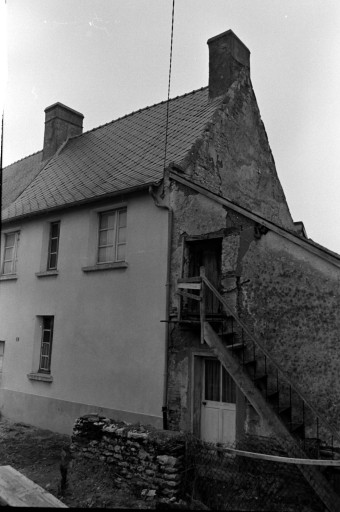Implantation en retrait de la rue. Plan rectangulaire à étage. Un pignon découvert. Haute toiture recouverte d'ardoise. Logis imposant avec plusieurs pièces à feu. Vestiges d'une ancienne porte en plein cintre et d'une tourelle d'escalier à l'arrière. Façade et ouvertures reprises.Orientation sud-ouest.