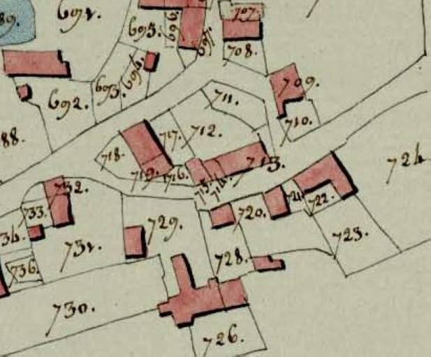 Bâti mentionné sur le cadastre de 1812. Remaniements postérieurs. Oeuvre repérée.