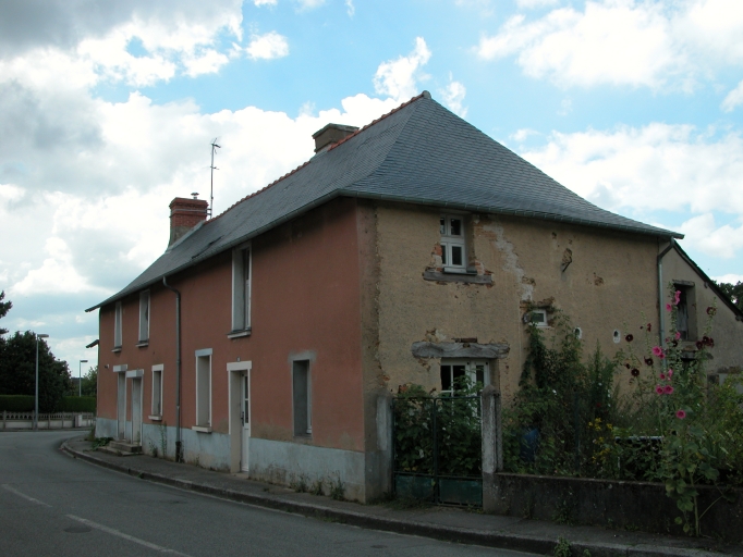 Implantation parallèle et en bordure de rue. Ensemble de logis réunis sous un même fonds. Corps central : de plan rectangulaire, plus haut, a étage ou grenier en haut surcroît, appentis arrière, toiture à longs pans et croupe. Gros oeuvre recouvert d'un enduit. Enduit coloré en façade.