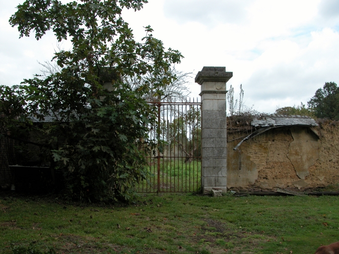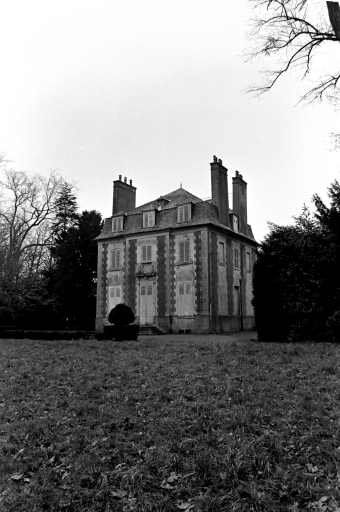 Logis de plan rectangulaire, double en profondeur, recouvert d'une toiture à longs pans brisés et croupe. Encadrement des baies et faux chaînages des angles harpés. L'enduit masque un bâti en pierre avec des encadrements de baies en granite. Anciens communs en terre. Ecuries (vestiges) reconstruite dans la basse cour du château avec marquise en fonte et verre, gros oeuvre en moellons avec des encadrements de brique. Escalier extérieur en brique. Pigeonnier en bois. Enclos en partie en terre. Portails conservés.