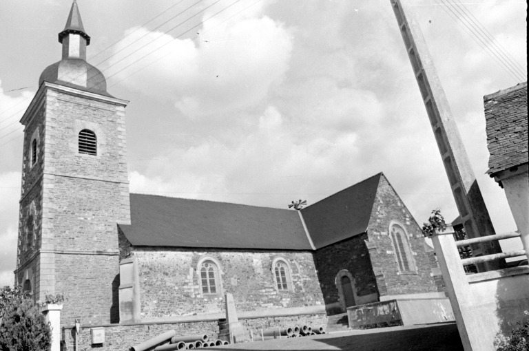 Eglise du 16e siècle de plan allongé, chevet remanié vers 1683. Transformée et agrandie au 19e siècle : ajout des chapelles du transept, transformation des baies de la nef selon le modèle de la baie sud du choeur, construction de la tour vers 1836.