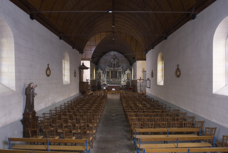 Implantation sur un point élevé de la commune. Enclos paroissial en partie en place. Le cimetière a été déplacé. Église de plan en croix latine, clocher porche, sacristie accolée au chevet, chevet plat.