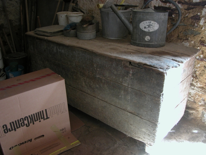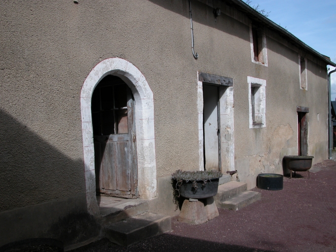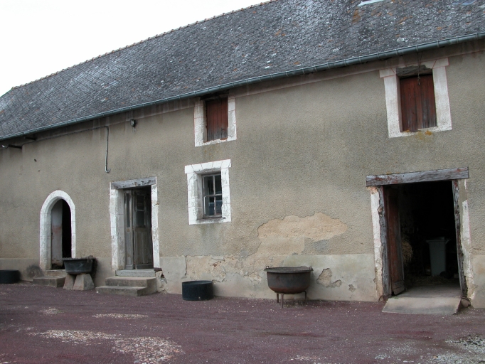 Ferme mentionnée sur le cadastre de 1813. Elle a été édifiée en plusieurs campagnes. Le corps principal est datable majoritairement du 18e siècle, vers les années 1700. Il a été agrandit d´un cellier dans le courant du 18e siècle. Les étables/grange/cellier qui sont situées perpendiculairement sont quant à elles construites au 19e siècle. La ferme aujourd´hui déclassée en dépendances a gardé sa disposition originelle et son élévation n´a pas ou peu subie de transformations. A ce titre, elle demeure un élément patrimonial de référence des logis dits à fonctions combinées, visibles dans le centre du bourg. Intérêt d'ancienneté. Intérêt d'authenticité.