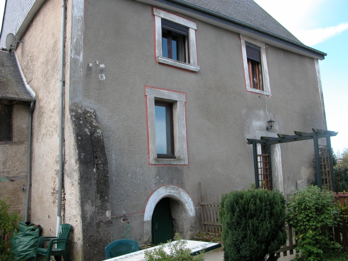 Ce logis fait partie des plus anciens conservés dans cette partie du bourg. Paul Banéat mentionne au nord de l'église, la maison du Perron ou des Marches comme étant étant l'ancien prieuré de Saint-Melaine. Il a été modifié à maintes reprises, toutefois, le volume très pentu, la cheminée sur mur gouttereau (disparue), les modénatures très soignées indiquent une datation avoisinante du 15e siècle. Les photos prises lors de l'enquête de 1973 signalent des ouvertures sur le pignon et une transformation en commerce de proximité comme le laisse supposer l'enseigne au-dessus de la porte. Une visite serait souhaitable et des recherches supplémentaires seraient à mener. Oeuvre sélectionnée pour son ancienneté et sa typologie peu courante. Intérêts architectural et d'ancienneté.