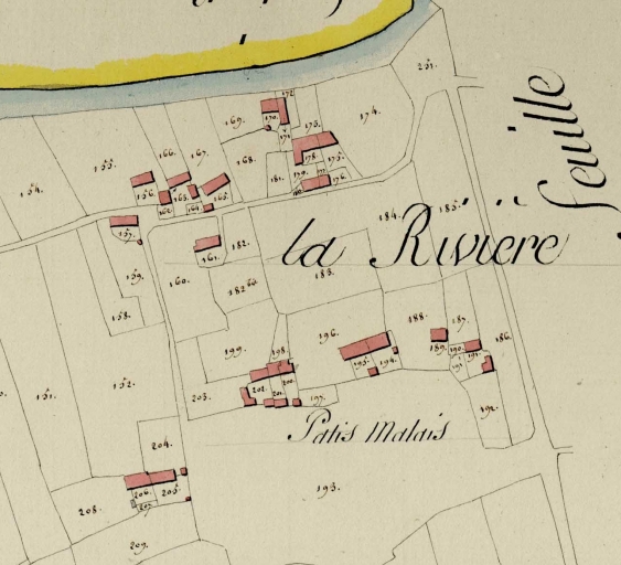 Écart regroupant les hameaux du Pâtis Malais et de la Rivière. Le développement de ces hameaux situés sur la rive gauche de la Seiche, est dû principalement à l´implantation d´un manoir qui relevait de l´abbaye Saint-Melaine de Rennes. Ce dernier mentionné dès le 15e était encore visible au début du 20e siècle. Une description nous en est donnée dans le dictionnaire de Paul Banéat. La plupart des logis des hameaux de la Rivière sont très anciens. Ils sont tous orientés au sud. Au Pâtis Malais plusieurs fermes sont regroupées et forment des alignements ou rangées d´habitat. Ces alignements demeurent toutefois modestes puisqu´ils regroupent deux ou trois logis à une pièce unique à feu d´environ 40 m2. Des étables ou celliers communiquent avec la salle. Une seconde porte était ouverte en façade postérieure et permettait l´accès au jardin et au puits. Les hameaux de la Rivière forment un ensemble patrimonial cohérent.