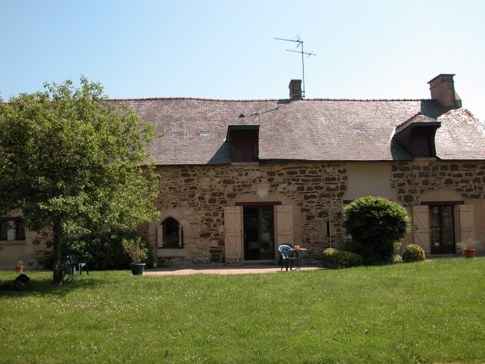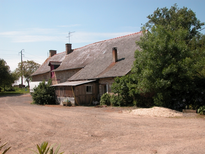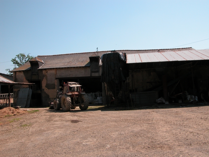 Motte à l'est de la ferme actuelle. Logis orienté ouest actuellement. Bâtiments d'exploitation autour d'une cour arrière. Gros oeuvre mixte pour le logis en moellons de schiste et en pierre calcaire. Bâtiments d'exploitation d'époques différentes. Ceux du 19e siècle sont en bauge sur un solin de schiste.