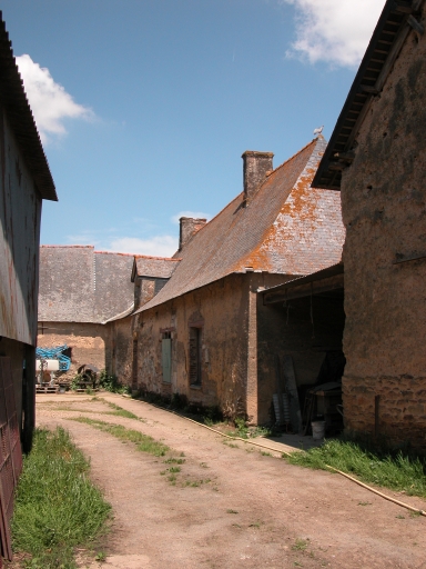 Logis orienté ouest. La partie centrale en maçonnerie est composée d'une grande pièce à feu de plus de trois mètres de hauteur. Un escalier droit dans l´angle nord ouest permet une communication avec une chambre en demi niveau installée au-dessus d´une cave. Cette grande pièce à feu communique vers le sud avec une seconde pièce à feu également très haute. Le grenier présente un pavement de terres cuites. Présence de blasons d´alliance et de la date de 1642 portée sur la lucarne du logis. Remploi à l'arrière dans les dépendances d'un blason d'alliance portant la date de 1599. Aile de dépendance en retour d'équerre construite majoritairement en terre. Anciennes dépendances avec toit à la Mansart détruites après l'enquête de 1973.
