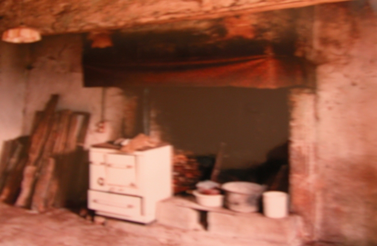 Orientation sud-ouest du logis. Corps principal d'habitation flanqué de dépendances aux deux extrémités. Logis à fonctions combinées à 3 portes en rez-de-chaussée avec deux pièces à feu. Chaque pièce à feu possède un vaisselier mural intégré dans le mur nord. Une pièce froide à usage de cellier ou d'étables (avant restauration) séparait anciennement les deux logis. Cellier construit postérieurement, en appentis à l'arrière, il englobe l'ancien puits circulaire. Dépendances isolées en retour d'équerre sur la cour en terre selon une technique moins courante faite d'un assemblage de petites mottes de terre, dite en caillibotis. Absence de solin en pierres.