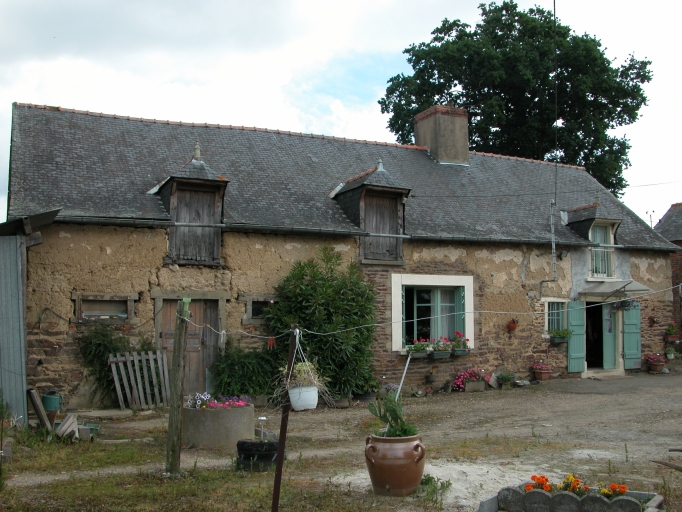 Orientation sud. Logis à fonctions combinées à une seule pièce à feu. Le logis a été rabaissé. Il conserve deux anciens épis de faîtage avec décor d´oiseaux. Ces derniers en terre cuite vernissée ont été remployés sur les lucarnes du grenier lors des remaniements du 19e siècle. Sur l'un des deux se devinent deux poinçons placés l'un en dessous de l'autre. Celui du haut difficilement lisible rappelle des armoiries, celui du bas porte la date de 1655 et les initiales G : (?) du maître potier ou du propriétaire des lieux à cette période. Ces poteries de production vraisemblablement locale peuvent sortir des ateliers de poteries de Fontenay réputés à cette période. Ces poteries émaillées de jaune s´oxydent au contact de l´air et prennent une coloration verdâtre.