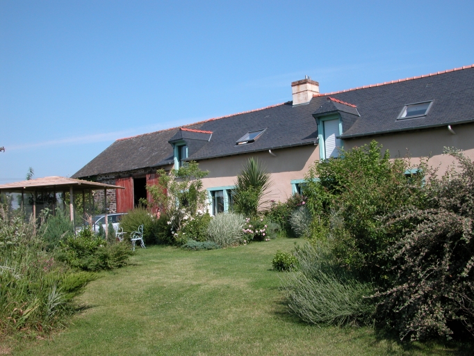 Orientation sud. Logis à fonctions combinées regroupant sous une même toiture une partie habitation et une partie exploitation. A deux pièces à feu. Avant la restauration, la distribution était, de l'ouest vers l'est de la longère : une grange avec pressoir à cidre / une partie habitation déclassée / la salle / et les étables. Cellier à l'arrière en appentis.