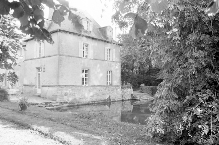 Environnement sauvegardé et parties constituantes en place. 01) Logis manorial orienté est / ouest, de plan rectangulaire à étage cantonné de deux pavillons formant une légère avancée en façade est et ouest. Le pavillon sud plus ancien est en pierre recouvert d'enduit tandis que celui du nord est en terre comme l´ensemble de la construction. L´élévation est ordonnancée selon un axe central affirmé par une porte en pierre de taille de calcaire. 02) Des douves maçonnées entourent une partie du logis. 03) Le tracé de l´ancien accès qui était situé dans l´axe du château, visible sur le cadastre napoléonien, est encore en partie en place. Un nouvel accès, au nord, ayant été aménagé dans le courant du 19e siècle avec une porterie. 04) La chapelle dédiée à Saint-Charles est située à l´angle nord-ouest de la cour actuelle, elle est actuellement déclassée en dépendances. Elle a subie plusieurs aménagements successifs. 05) Écuries et logement formant un pavillon indépendant, à l´angle sud-ouest de la cour. Escalier intérieur en bois à balustres. 06) Saut de loup, visible, à l´ouest de la cour, autrefois situé à l´extrémité de l´accès principal 07) Motte, vraisemblablement motte à Madame dessinée lors du tracé du parc, située à l´angle nord-ouest du domaine, près du carrefour du Champ Long. 08) Orangerie, à l´angle nord du jardin arrière (à l'emplacement probable d'un ancien colombier). 09) Source, au nord-est du jardin arrière 10) Passage couvert accolé à la chapelle donnant accès à la métairie 11) Métairie du manoir, à cour fermée. Logis actuellement de parti bas, ancien logis à fonctions combinées. Orienté sud. Des étables et autres dépendances ont été construites postérieurement au logis et forment des bâtiments indépendants, en bauge, à l´arrière du corps principal du logis.
