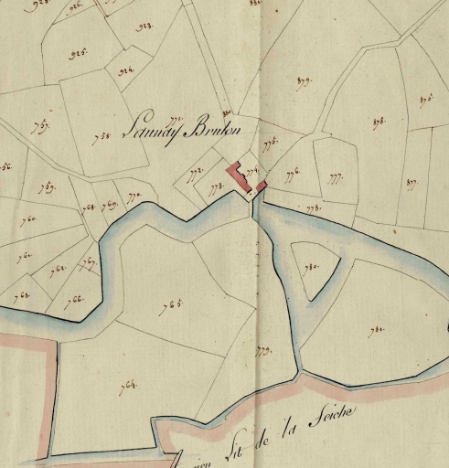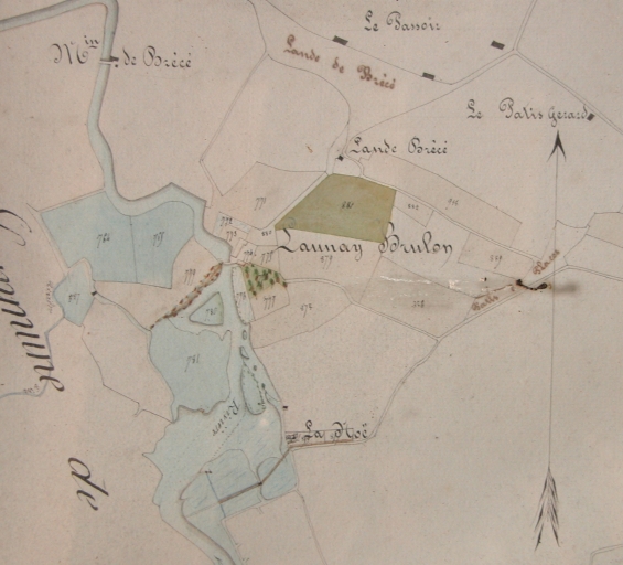 Situé sur la rive est de la Seiche, le manoir de Launay-Brûlon est cité dès 1448, il appartient à cette période à la famille de Beaucé. La tour d´escalier hors oeuvre plaquée contre la façade et qui masque en partie l´entrée principale semble indiquer deux campagnes possibles durant le 15e siècle. Ce logis qui conserve toutefois une belle allure a subi plusieurs reprises qui se traduisent par une mise en œuvre différente de sa maçonnerie, notamment dans les parties hautes. Un atelier de traitement du chanvre s´est greffé à la construction initiale, ce dernier est mentionné sur le cadastre de 1813, de même que la grange qui forment une aile en retour d´équerre. L´ensemble des bâtiments sont consignés comme faisant partie des propriétés de la terre de Mouillemuse vendues par la famille Viard et acquises en 1882 par Hyacinthe Gaëtan Porteu et son épouse Josephine Marie Laure Ramé. Intérêt architectural. Fait partie des constructions insignes du territoire communal.