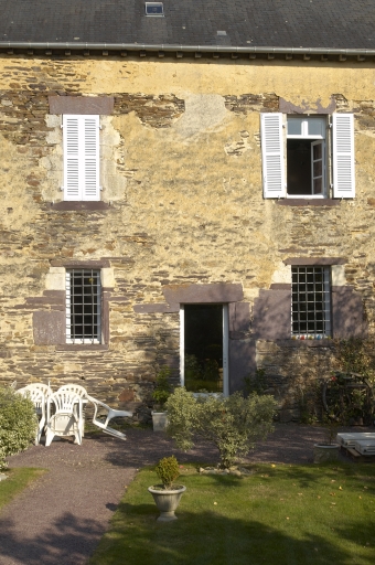 La maçonnerie de ce bâtiment est composée de moellon de schiste pourpre ; le toit à longs pans est quant à lui couvert d'ardoise. Les encadrements des baies de la façade ouest sont réalisés en pierre de schiste pourpre et en pierre calcaire. Les fenêtres du rez-de-chaussée ont conservé leurs grilles. A l'est, en façade postérieure, se situe une tour de plan quadrangulaire contenant l'escalier en vis en bois, qui dessert l'étage. Par ailleurs, une échauguette se trouve à l'angle nord-ouest de la construction. Elle communique avec la chambre de l'étage, située au nord de la construction. Son toit en poivrière est surmonté d'un épi de faîtage. Au nord de ce bâtiment, se trouve une demeure dont la construction est plus récente, ainsi qu'un parc. A l'ouest du manoir, la cour est fermée par une dépendance construite en terre et couverte d'un toit à croupes en ardoise ainsi que par une autre dépendance construite en moellon de schiste au nord-ouest.