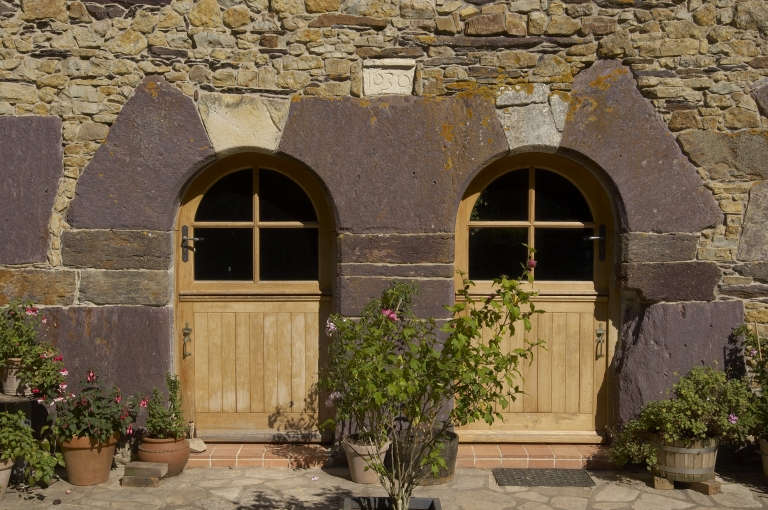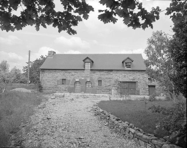 Le gros oeuvre de ce bâtiment est composé d'une maçonnerie de moellon de schiste. La toiture à longs pans est couverte d'ardoise. Les encadrements de baies sont réalisés en pierre de taille de schiste pourpre. Les portes jumelées en plein cintre possèdent des clés en pierre calcaire. Entre les deux portes, en partie supérieure, se trouve une pierre calcaire portant la date de 1636. Les deux fenêtres de la façade sont équipées de grilles. La partie Est de la construction abrite une dépendance. D'autre part, un four se trouve au sud-est.